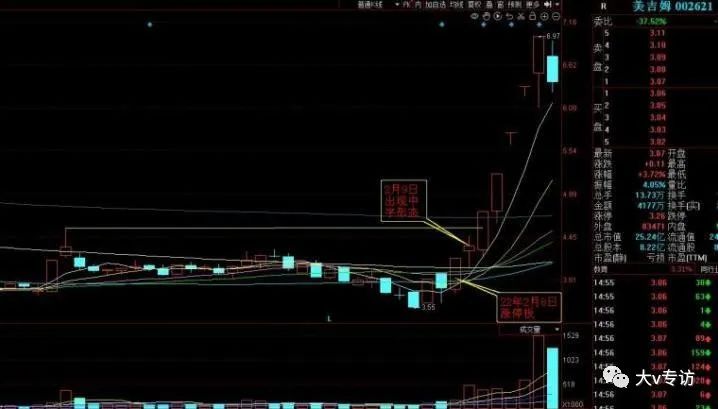 选自淘股吧ID:直击七寸123456 威帝股份的缩小图,黄色线为左峰放大一下来看,我是在它二板是参与的,这个二板是11月30日下午从水下拉升至涨停的,因为在它一板的时候我就看到...