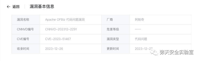 网安引领时代,弥天点亮未来 0x00写在前面 本次测试仅供学习使用,如若非法他用,与平台和本文作者无关,需自行负责!0x01漏洞介绍Apache OFBiz是美国阿帕奇(Apache)基...