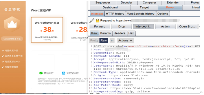 扫码领资料获网安教程免费&进群今天也是偶然,想要下载一份实习证明,在网上寻找模板,在某网站中发现有一些简洁,合适的模板,发现需要充VIP,于是抱着试一试的态度测试了一下是否有支付漏洞1, 在word文...