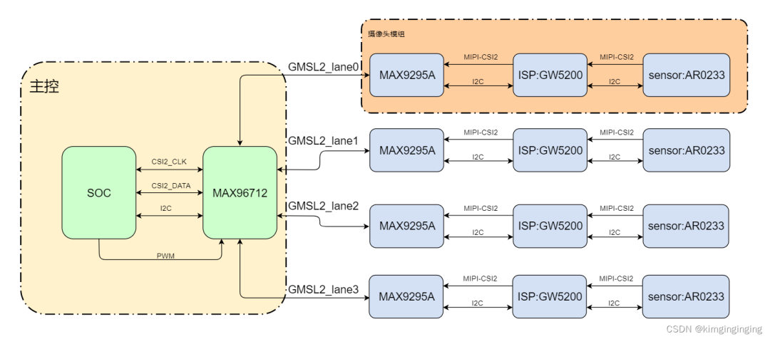 点击上方蓝字谈思实验室获取更多汽车网络安全资讯1.Camera链路完整框架1.1 链路框架图:GMSL1方案: 3GbpsNOTE:摄像头模组采用森云SG2-AR0231C...