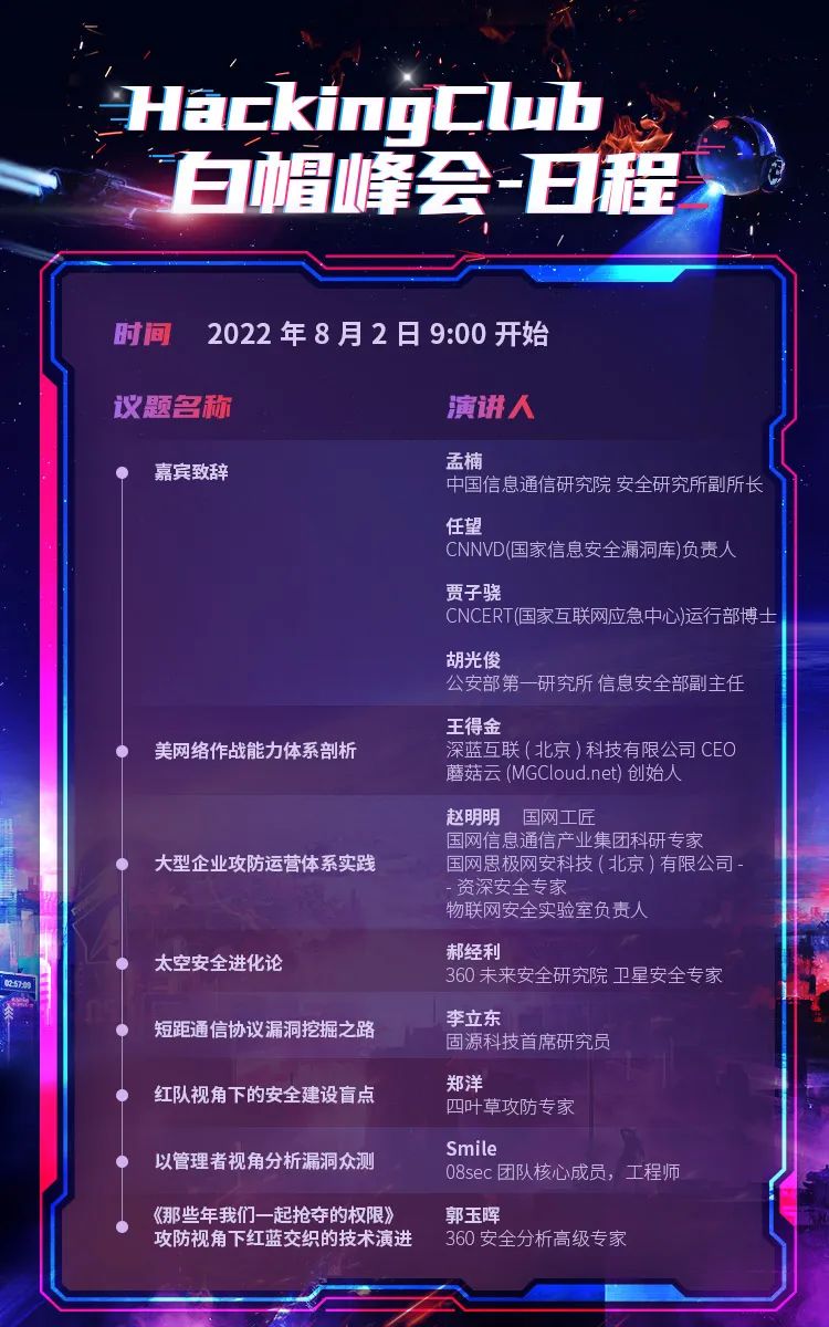 ISC2022 HackingClub白帽峰会倒计时1天!最全议程正式公布!元宇宙集结,精彩绝伦!