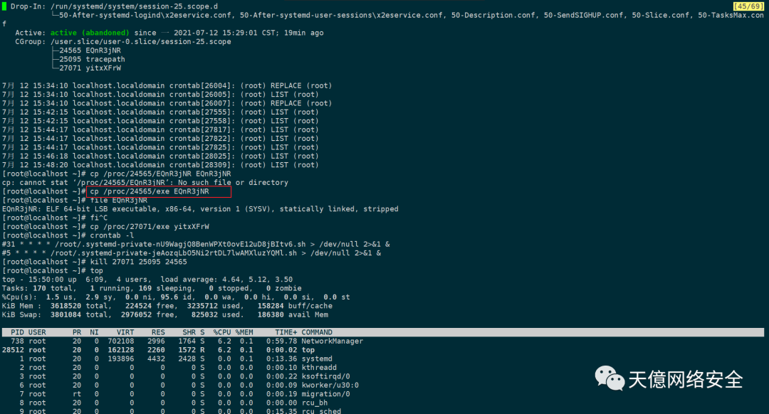 序组里有同学说他们机器被攻击了 :(出现的问题是有个进程占满了 cpu,并且干不掉他那么开搞 :)登录之后看到了熟悉的随机字符串为文件名的占满了 CPU 的程序先想到了上次帮曾大佬同学看的那台机器,于...