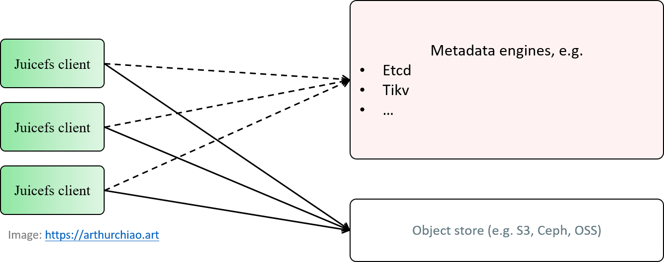 Published at 2024-07-13 | Last Update 2024-07-13 JuiceFS 是一个架设在对象存储(S3、Ceph、OSS 等)之上的分...