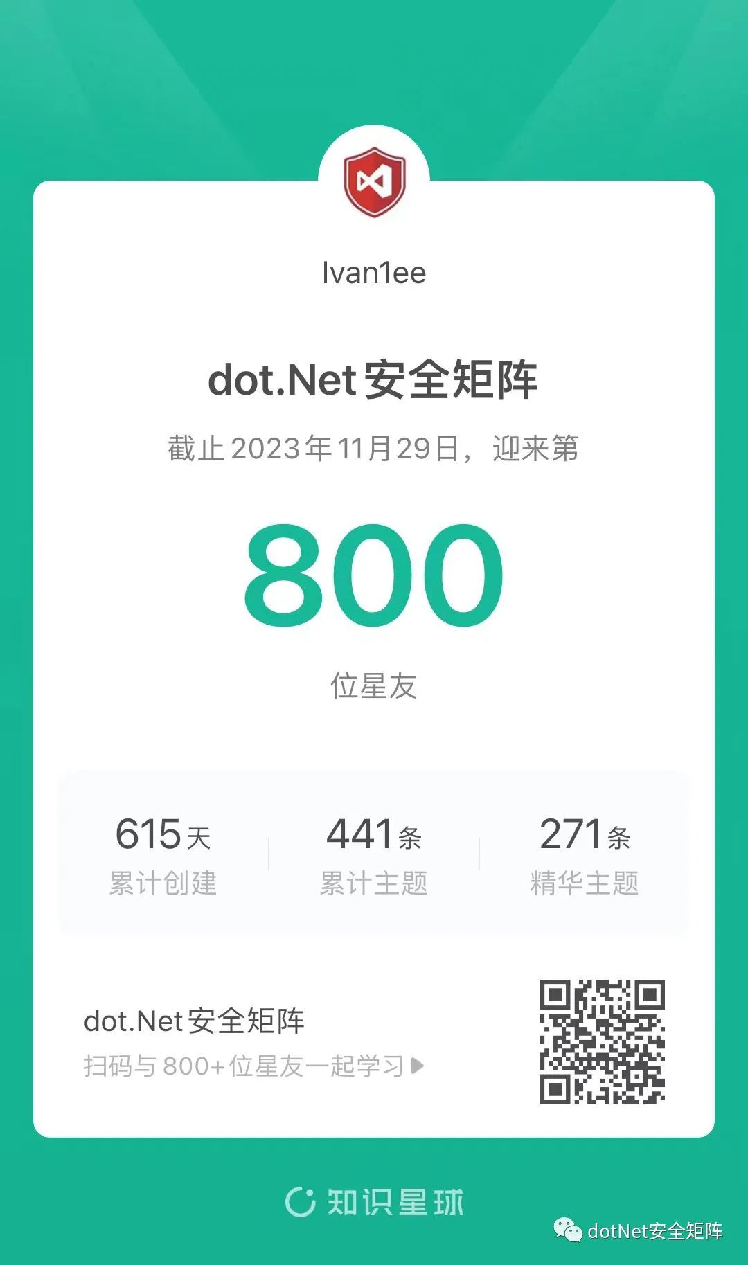 为了更好地应对基于.NET技术栈的风险识别和未知威胁,dotNet安全矩阵星球从创建以来一直聚焦于.NET领域的安全攻防技术,定位于高质量安全攻防星球社区,也得到了许多师傅们的支持和信任,通过星球深度...