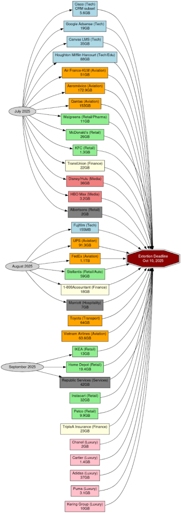2025年9月,网络犯罪集团Scattered LAPSUS$ Hunters利用Salesforce漏洞窃取近十亿条记录,并通过钓鱼攻击和OAuth令牌滥用获取访问权限。该组织威胁在10月10日前公开数据,影响涉及航空、零售、金融等多个行业。...