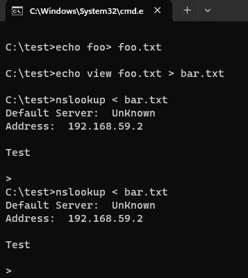 利用nslookup.exe的view命令读取文件并排序,通过构造特定文件和本地payload实现代码执行。...