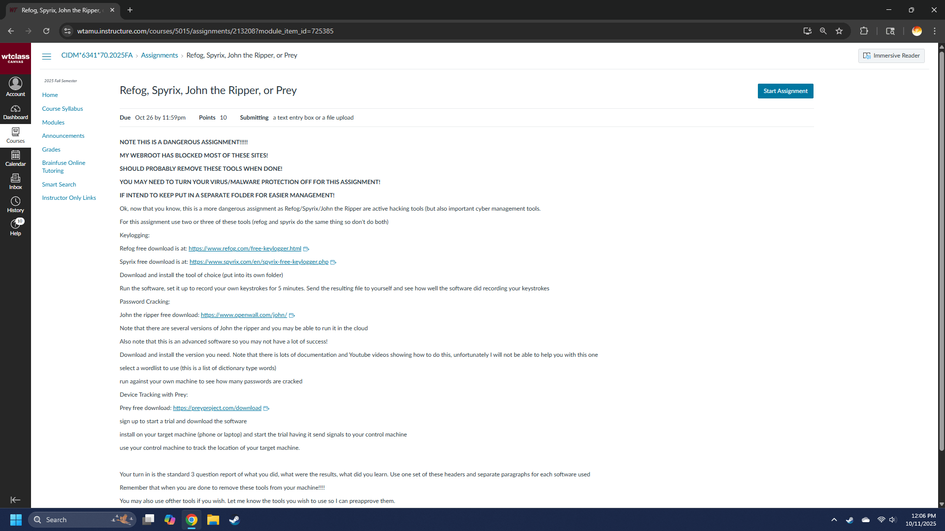 Is it normal to for professors to use Refog/Spyrix/John the Ripper as a required assignment?
