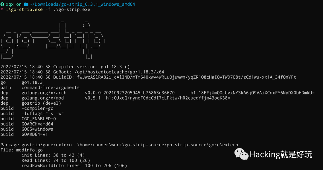 go-strip可以一键还原go源码的结构,能展示go编译器,go root,go mod依赖信息,go编译参数,go源码结构(每个package下的文件名,函数,函数行号和函数行总量)