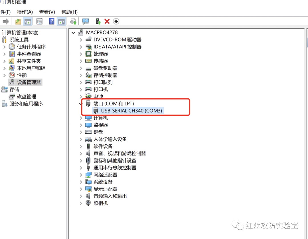 将数据线插入开发板另一端连接至电脑 打开算计管理