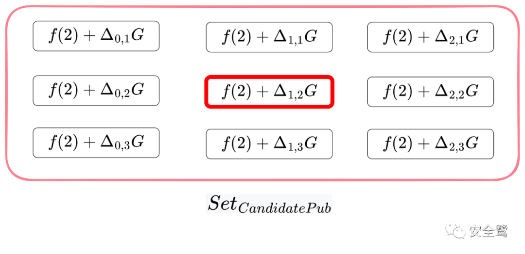 在实际攻击操作时,由于候选公钥集合是未知,我们可以根据靓号难度来估算候选公钥集合的大小,从而设计平移集合。