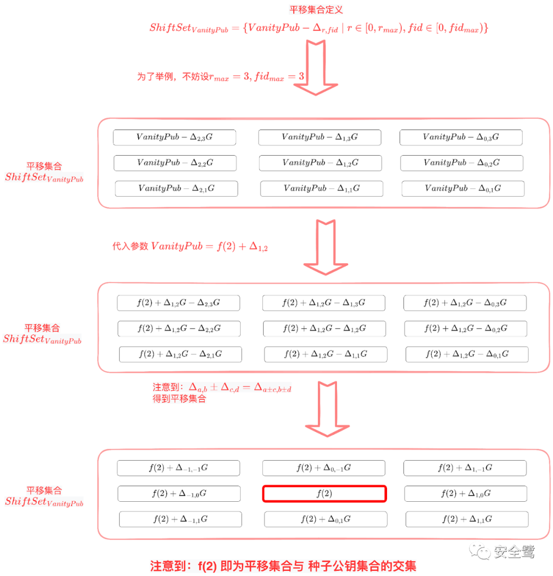 为什么求平移集合?因为平移集合中包括种子公钥。比如上图中的