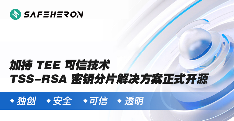 此次,Safeheron 推出的 TSS-RSA 密钥分片解决方案,不仅加持 TEE 可信技术,同时也已实现项目开源。