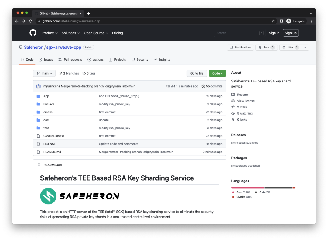 详情请至 Safeheron’s TEE Based RSA Key Sharding Service GitHub(https://github.com/Safeheron/sgx-arweave-cpp)。