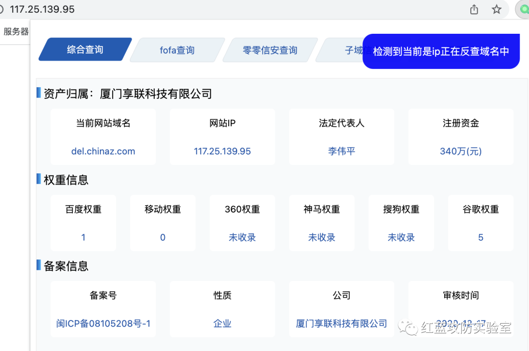 考虑到使用ip访问的情况也很多,所以增加了ip反查域名,然后联动查询相关信息。