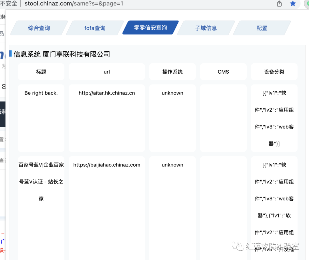 3、零零信安查询 (时间仓促,下个版本会把鹰图,QUAKE等整合到插件中)