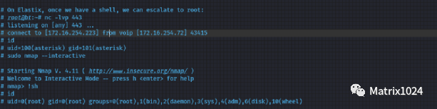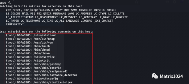 执行sudo -l命令,发现有很多免密执行root权限的文件,利用FreePBX 2.10.0 / Elastix 2.2.0 - Remote Code Execution的提权方式进行提权。
