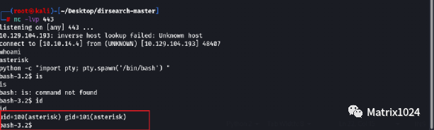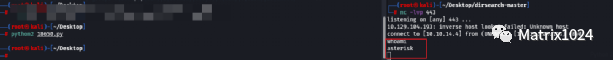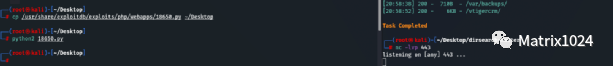 Kali监听,运行漏洞利用脚本,成功反弹shell。