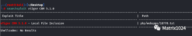 此外对https://10.129.104.193/vtigercrm/进行漏洞发现,发现存在”vTiger CRM 5.1.0 - Local File Inclusion “漏洞。