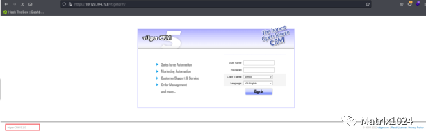 通过目录扫描还发现https://10.129.104.193/vtigercrm/登录页面,版本为vtiger CRM 5.1.0。