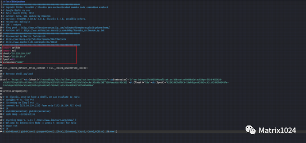 尝试利用FreePBX 2.10.0 / Elastix 2.2.0 - Remote Code Execution漏洞,修改脚本如下,但是无法填入extension变量的值(查看payload该字段在URL中拼接),无法反弹shell成功。