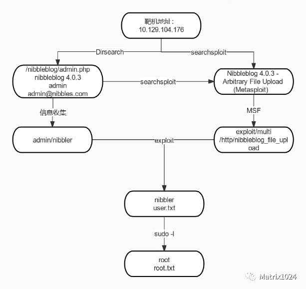 在http://10.129.104.176/nibbleblog/目录,通过”Powered by“信息,得知网站使用Nibbleblog组件。
