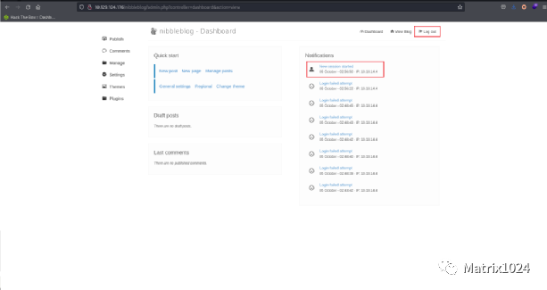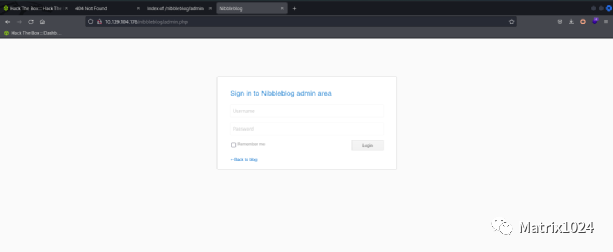 在http://10.129.104.176/nibbleblog/admin.php页面发现登录页面。