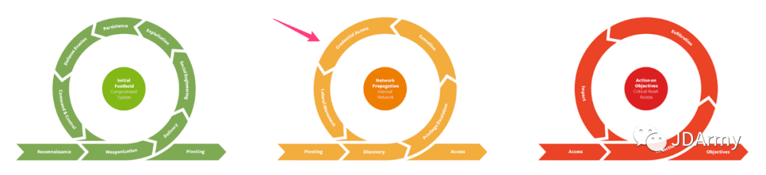 在整个unified kill chain中Credential Access的环节起着重要的作用。在稳定获得初始化立足点后,需要获取目标主机上的相关凭证,并通过这些凭证进行后续的横向移动,当凭证获取不足时,无疑会加大后续的横向移动难度,因此Credential Access也是攻防对抗的重要战场。