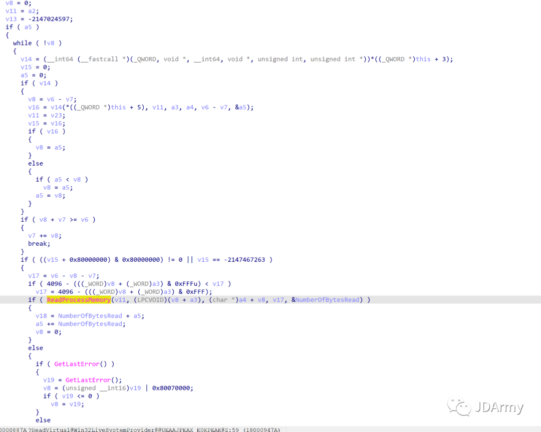 6. 如果是句柄,则通过QueryFullProcessImageName来显示出句柄的可执行文件路径,如果是lsass.exe文件,则调用后续的MiniDumpWriteDump来获取lsass内存。
