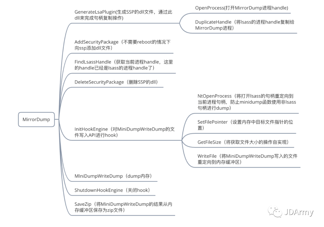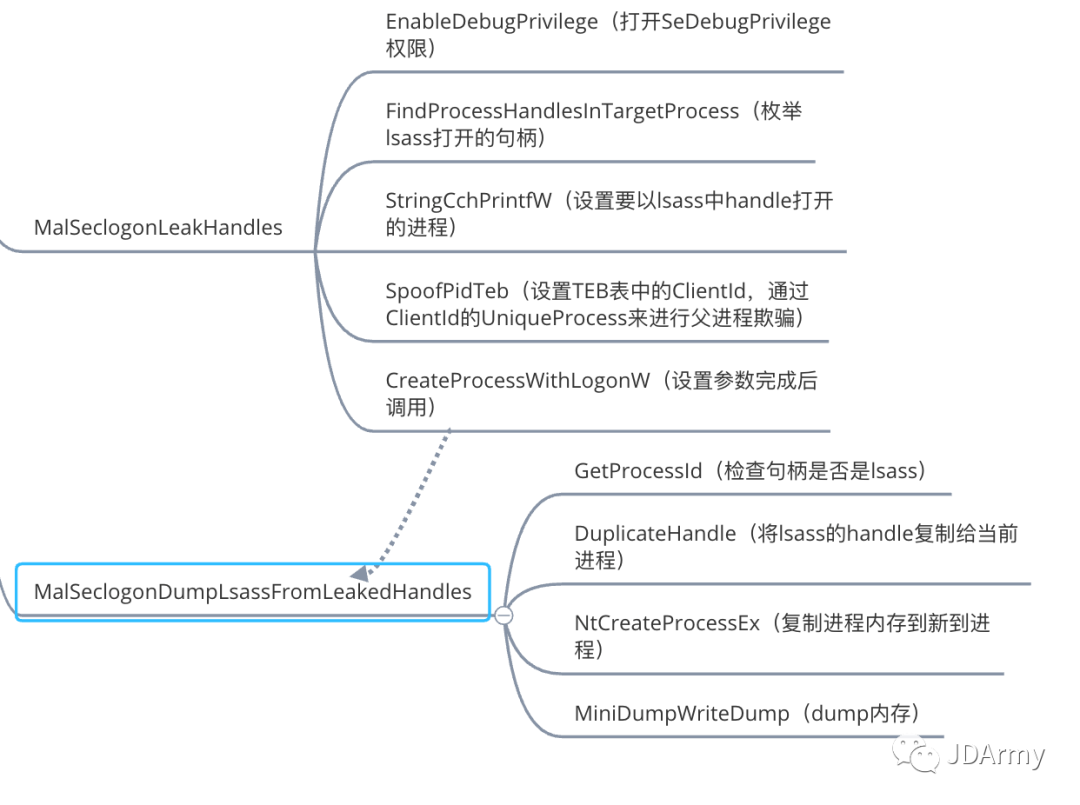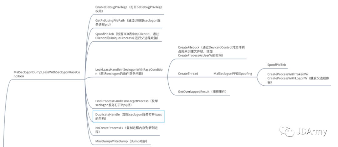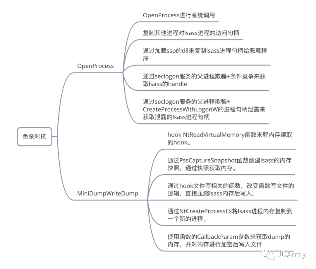 了解了上述的相关技术后,我们重新来看下dump lsass技术的关键步骤。