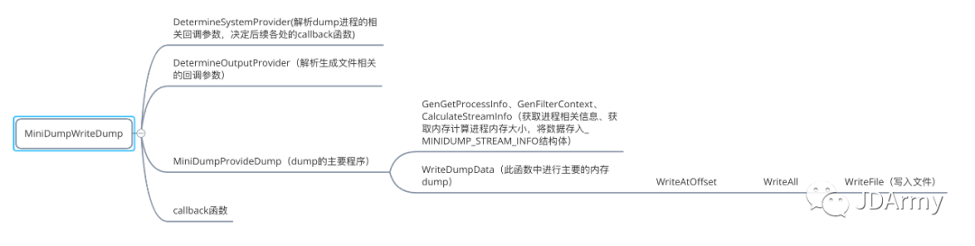 MiniDumpWriteDump的一系列核心流程,如图所示(具体实现在dbgcore.dll中)
