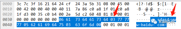 在检测dns记录的时候遇到了一个问题,DNS数据包中.并不是ord('.')的格式