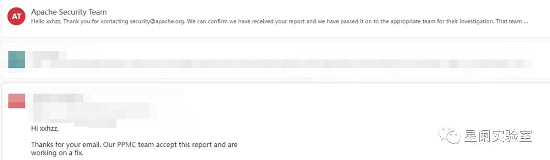 同时发现某Apache开源项目的CVE漏洞,报告被该团队接受并正在修复,尚未披露。