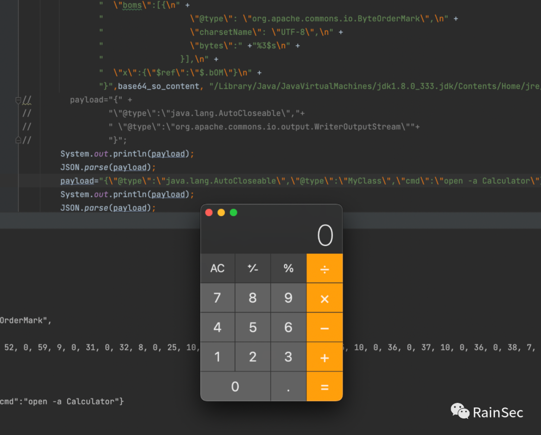 {"@type":"java.lang.AutoCloseable","@type":"MyClass","cmd":"open -a Calculator"}这里只做简述,具体原理到threedr3am师傅的博客中查看。