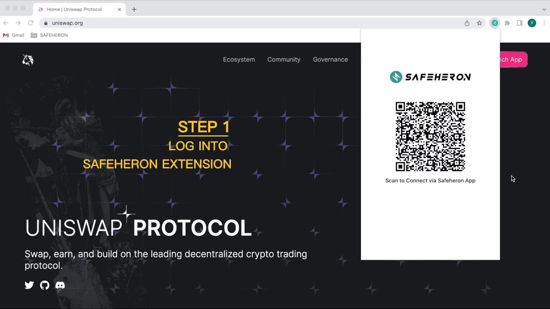用户通过 Safeheron 浏览器插件发起 Web3 交易,并在 Safeheron App (手机应用程序)进行交易审批和签名。