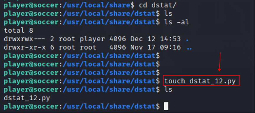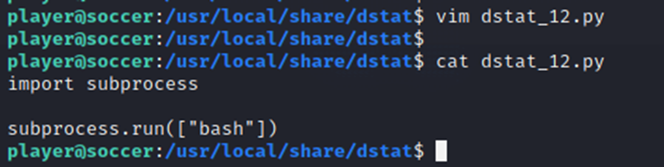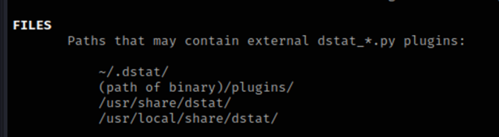 从doas.conf文件可以看到,当前用户player能够以root权限使用命令执行/usr/bin/dstat,并且不需要当前用户密码以及root密码,那么我们可以通过dstat进行提权。