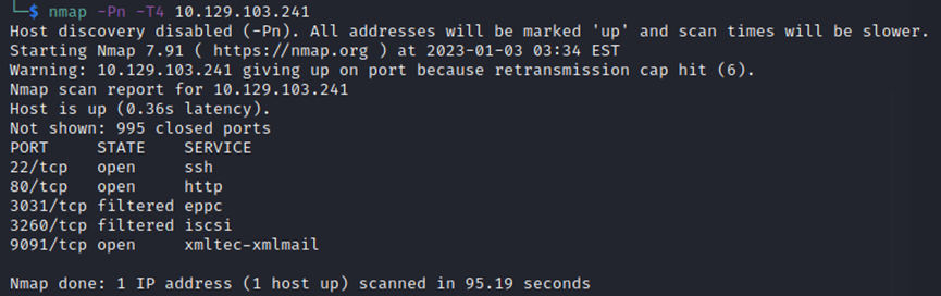 使用Nmap做个端口嗅探,发现开放22、80、3031、3260、9091端口,开放80端口的Web服务。