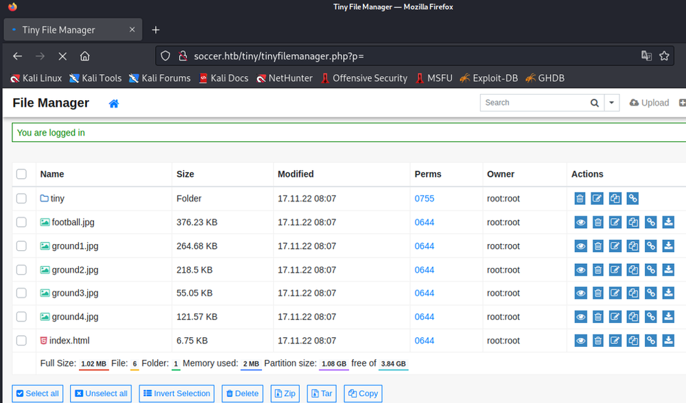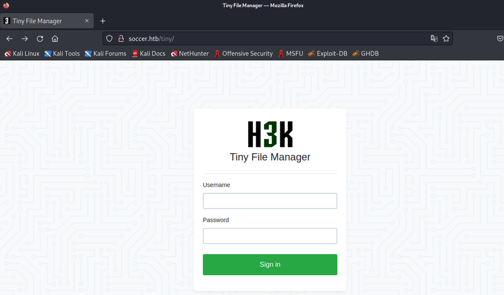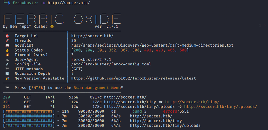 使用feroxbuster对页面进行目录扫描,发现后台地址http://soccer.htb/tiny。