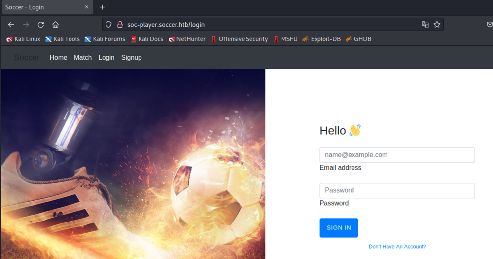 为soccer.htb下的子域名,该域名存在可登录和注册的页面。