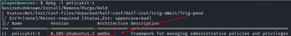 执行命令(dpkg -l policykit-1)查看下系统版本信息,发现已打补丁,提权脚本无法使用,需要换个思路。