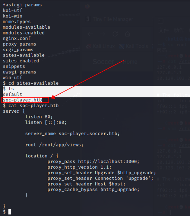 查找下可利用的信息,在/etc/nginx目录下,发现一个域名地址soc-player.htb。
