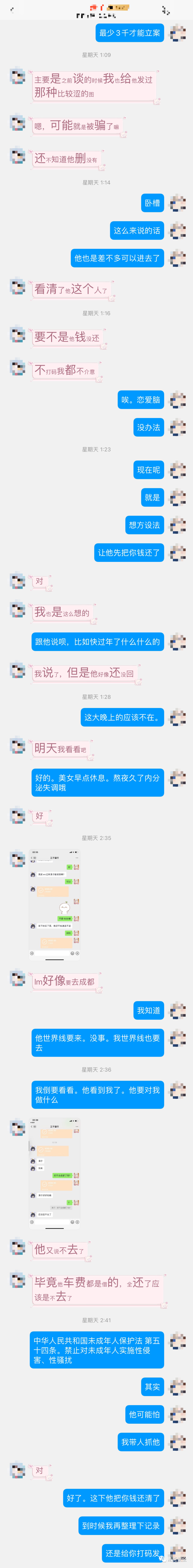 找未成年受害人借钱截图(受害人视角)