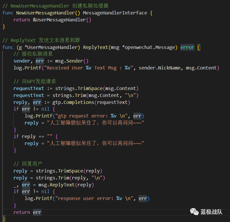目前只对接了文字消息,下一个版本我想加入语音消息,然后识别成文字再发送给chatgpt,具体看心情了~~~~