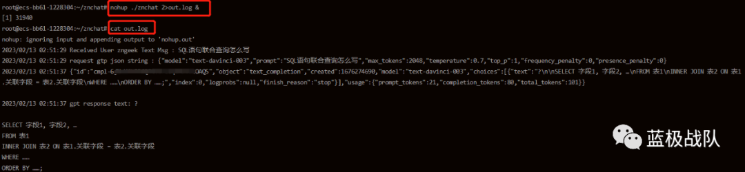 nohup ./znchat 2>out.log &查看输出可以直接
