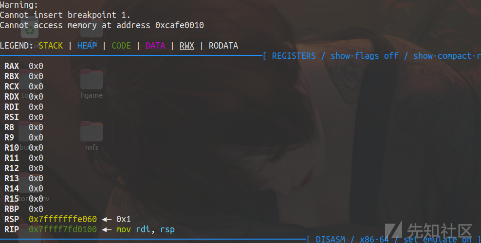 RSP 0x7fffffffdf60 —▸ 0x7fffffffe060 ◂— 0x1