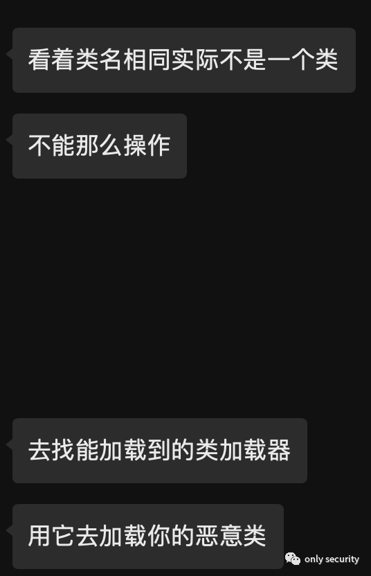 当尝试使用ognl表达式一直赋值到obj5,再通过恶意类加载剩余的函数时,发现注入不了内存马,原因还是在于Classloader的问题,找不到相应的class,一直到这里,也不是没有收获的