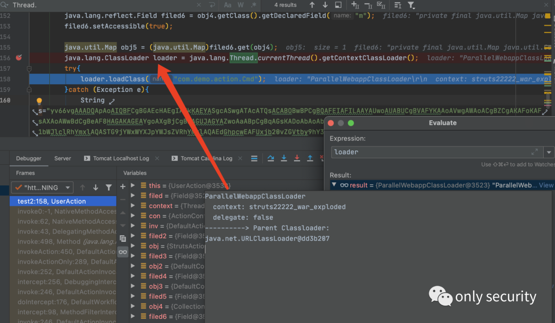 还是classloader的问题,那么就去翻阅struts2的文档了,去找一些可能可以获取到classloader的地方,如下: