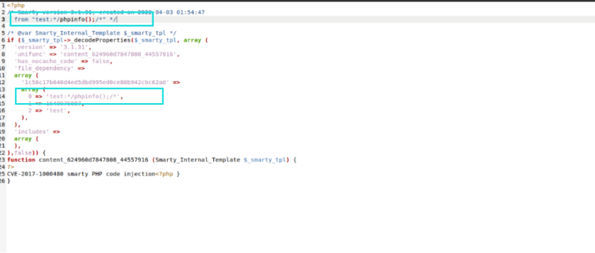 $template = "CVE-2017-1000480 smarty PHP code injection";