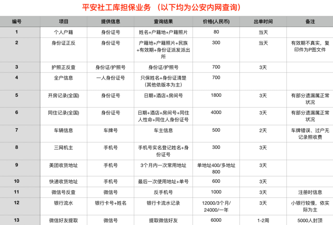 其中最吸人眼球的不是信息的齐全程度,也不是价格的昂贵,更不是他们承诺的出单时间之快,而是他们的渠道竟然写着GA 内网,虽然真实性不得而知,但是从担保交易来看,他们是确实能拿到数据,具体是怎么拿到数据就只能靠各位看官的想象力了,世界之大无奇不有。