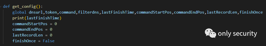 实现该功能,只需要利用filter获取完整的DNS结果即可。实现过程,实现一个新的初始化函数get_config(),在想要获取完整的命令回显时只使用get_config()来初始化,便可直接进入到解码Hex的过程中,获取命令回显。